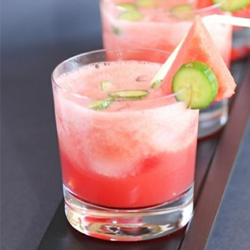 2.西瓜,香瓜,桃子丁放榨汁机中,加少许凉开水榨汁。